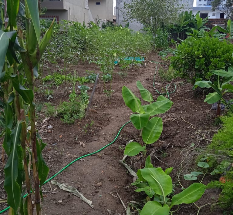 Não, o terreno é plano, livre de benfeitorias e pronto para construir o que desejar.